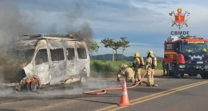 Na manhã desta terça-feira (13), o Corpo de Bombeiros do Distrito Federal (CBMDF) foi acionado para combater um incêndio em uma van na DF-130. O incidente ocorreu no sentido Café Sem Troco, na região de Planaltina, e causou a interdição temporária de um trecho da rodovia.