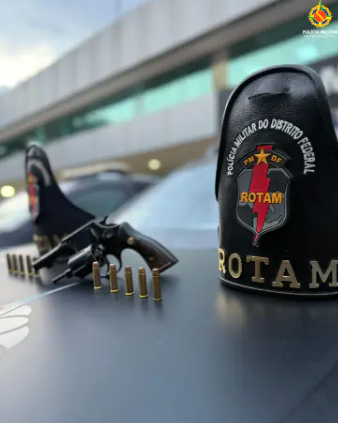 Após denúncia da população, as equipes de ROTAM localizaram o veículo do autor e realizaram a abordagem. Na revista pessoal, nada foi encontrado, mas durante a busca veicular os policiais apreenderam 01 revólver calibre .38 escondido no sistema de ar-condicionado e 10 munições intactas em outros compartimentos do carro.