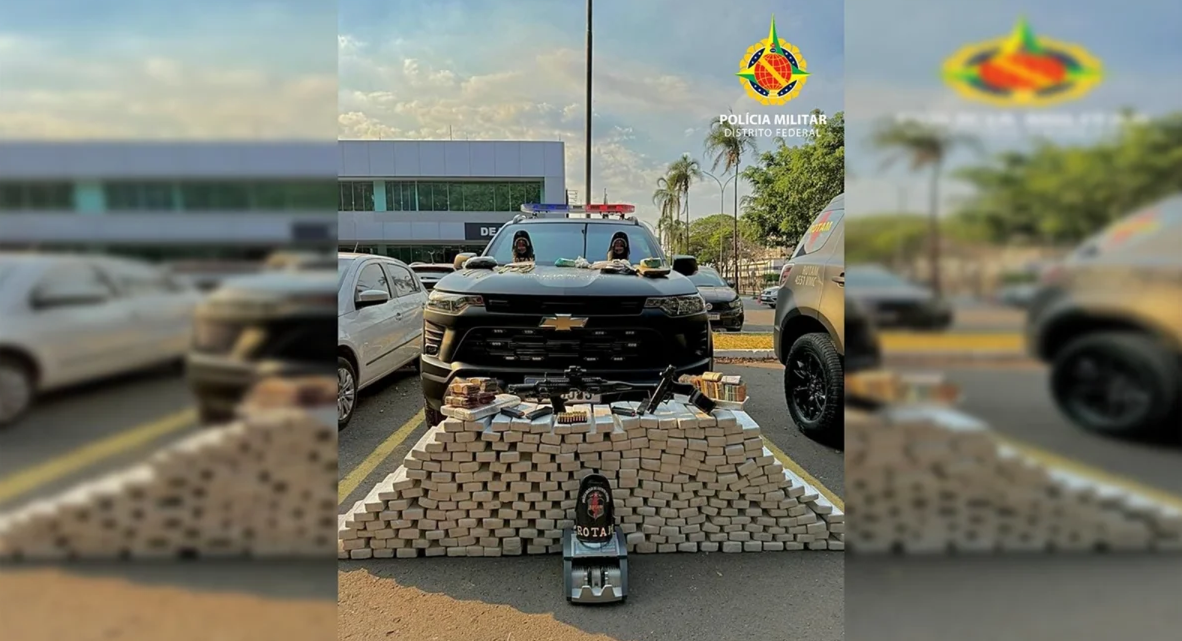 Durante a abordagem, os policiais localizaram 286 tabletes de maconha, além de outros itens relacionados ao tráfico, incluindo armas, munições, dinheiro em espécie e veículos utilizados pelos suspeitos.